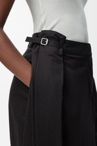 Trousers in lightweight cotton and silk twill featuring a draped construction with fixed tabs at the waist. - Relaxed fit, regular length - Mid waist, loose leg - Concealed zip fly - Seam pockets, buttoned rear flap pocket Colour: Black Main material: Cotton/Silk Weight: 0.9 kg Made in: Italy Materials & care Main Material: 90% cotton 10% silk