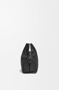 Launched in the 1980s, the Flamenco Clutch cinches closed using drawstring pulls finished in signature coiled knots. This version is crafted in nappa calfskin. - The Flamenco can hold for example a large wallet, all mobile phones or an A5 notebook, 0.5L. bottle and sunglasses case. - Shoulder, crossbody or hand carry - Detachable and adjustable strap - Discreet magnetic closure - Gold suede lining - Gold or silver LOEWE embossed Details - Colour: Black - Metallic colour: Gold - Main material: Nappa Calf - Strap length: 96 - 120 cm - Weight: 0.5 kg - Height (cm): 24.5 - Width (cm): 30 - Depth (cm): 10.5 - Height (inch): 9.6 - Width (inch): 11.8 - Depth (inch): 4.1 - Model ID: A411FC1XBF - CIL: 0010966075 - Made in: Spain