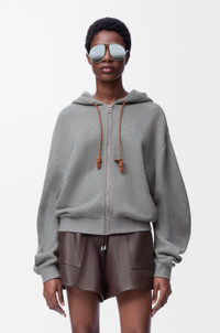 Hoodie in medium-weight cotton and cashmere fleece featuring a hooded collar with a Flamenco-inspired leather knot drawstring. - Relaxed fit, regular length - Curved sleeves - Ribbed cuffs and hem - Zip front fastening Colour: Grey Main material: Cotton/Cashemere Weight: 0.84 kg Made in: Portugal Materials & care Main Material: 95% cotton 5% cashmere