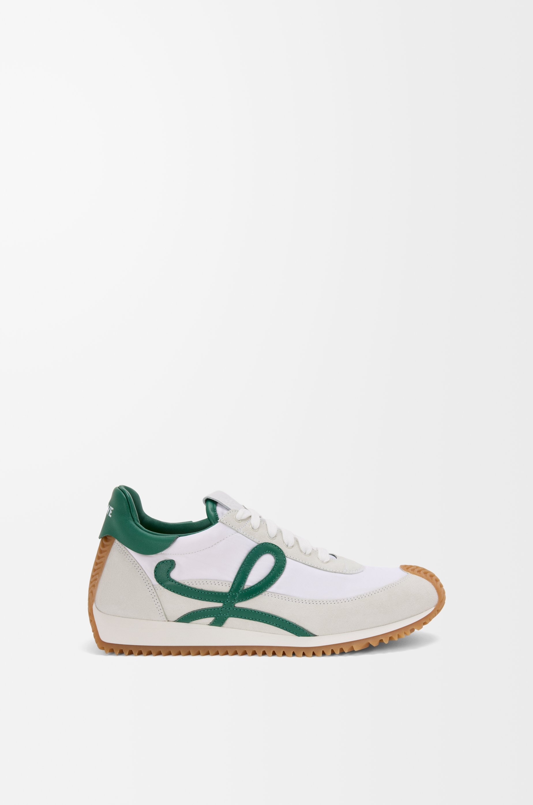 Lace-up sneaker in nylon and suede featuring an updated ultra-flexible and lightweight construction and the signature honey-coloured rubber outsole that extends from the toecap to the back of the heel. - 25mm heel - Signature L monogram on the side - Embossed Anagram on the tongue - LOEWE on the heel tab - Runs a half-size larger. If between sizes, choose the smaller size. Colour: White/Dark Green Main material: Nylon/Suede Weight: 1.02 kg Made in: Italy