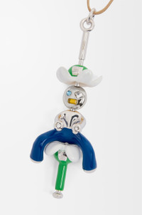 Flower Hat pendant in sterling silver and enamel designed to be worn stacked with the Acrobat pendants. Details - Colour : Silver/White - Main material : Sterling Silver/Enamel - Weight : 0.0076 kg - Height (cm) : 2.2 - Depth (cm) : 8.5 - Height (inch) : 0.9 - Depth (inch) : 3.3 - Model ID : JJ22241X18 - CIL : - 0011248549 - Made in : Italy