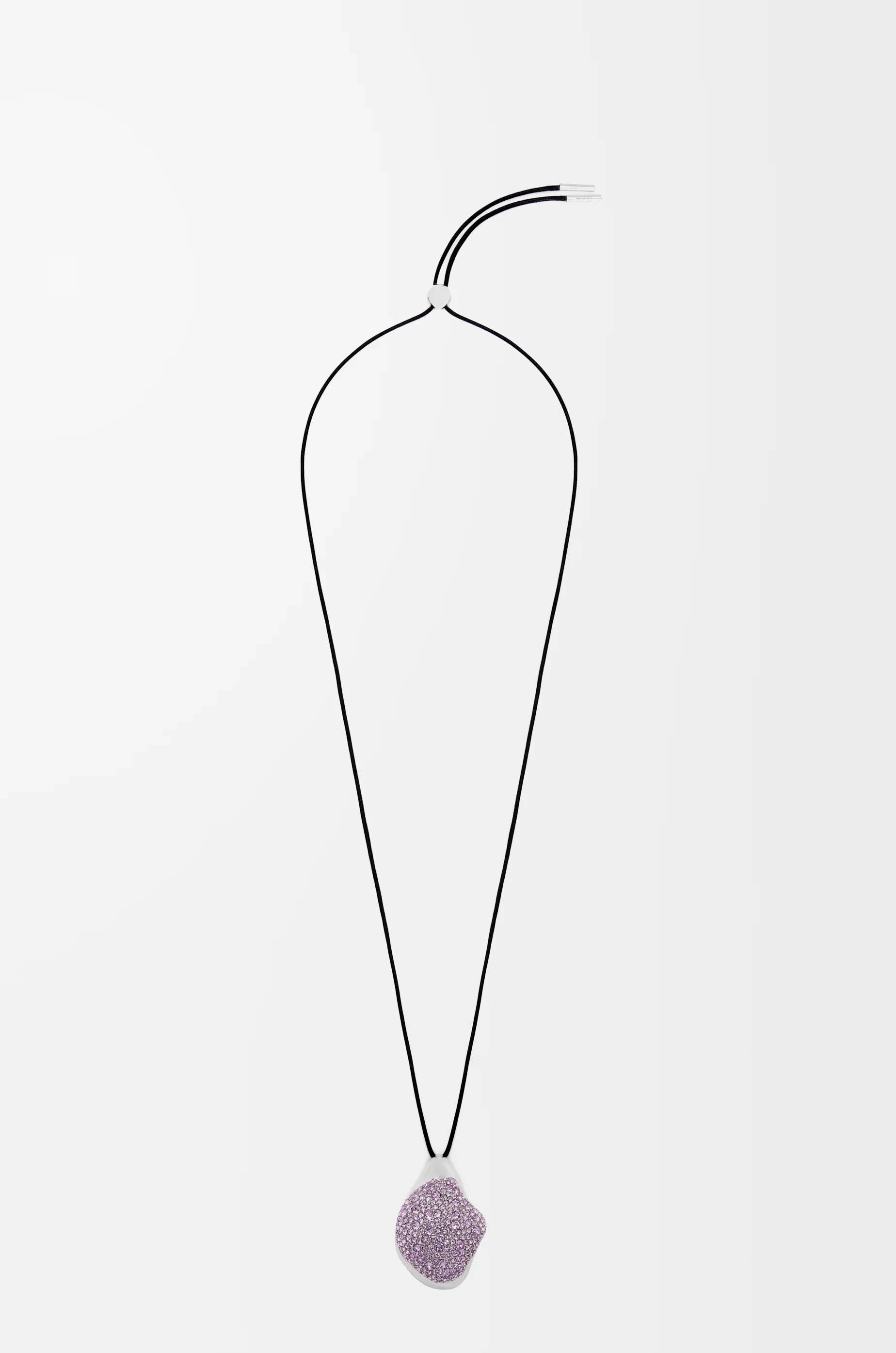 Foam Drip pendant necklace crafted in sterling silver and pave crystals inspired by a foam piece exclusively created by artist Lynda Benglis as part of a special LOEWE x Lynda Benglis collaboration. - Cord necklace - Engraved L BENGLIS signature - Engraved LOEWE - Anagram engraved Pebble detail Details - Colour : Silver/Light Mauve - Metallic colour : Silver - Main material : Sterling Silver/Crystals - Weight : 0.036 kg - Model ID : JJL5241X02 - CIL : - 0011037777 - Made in : Italy