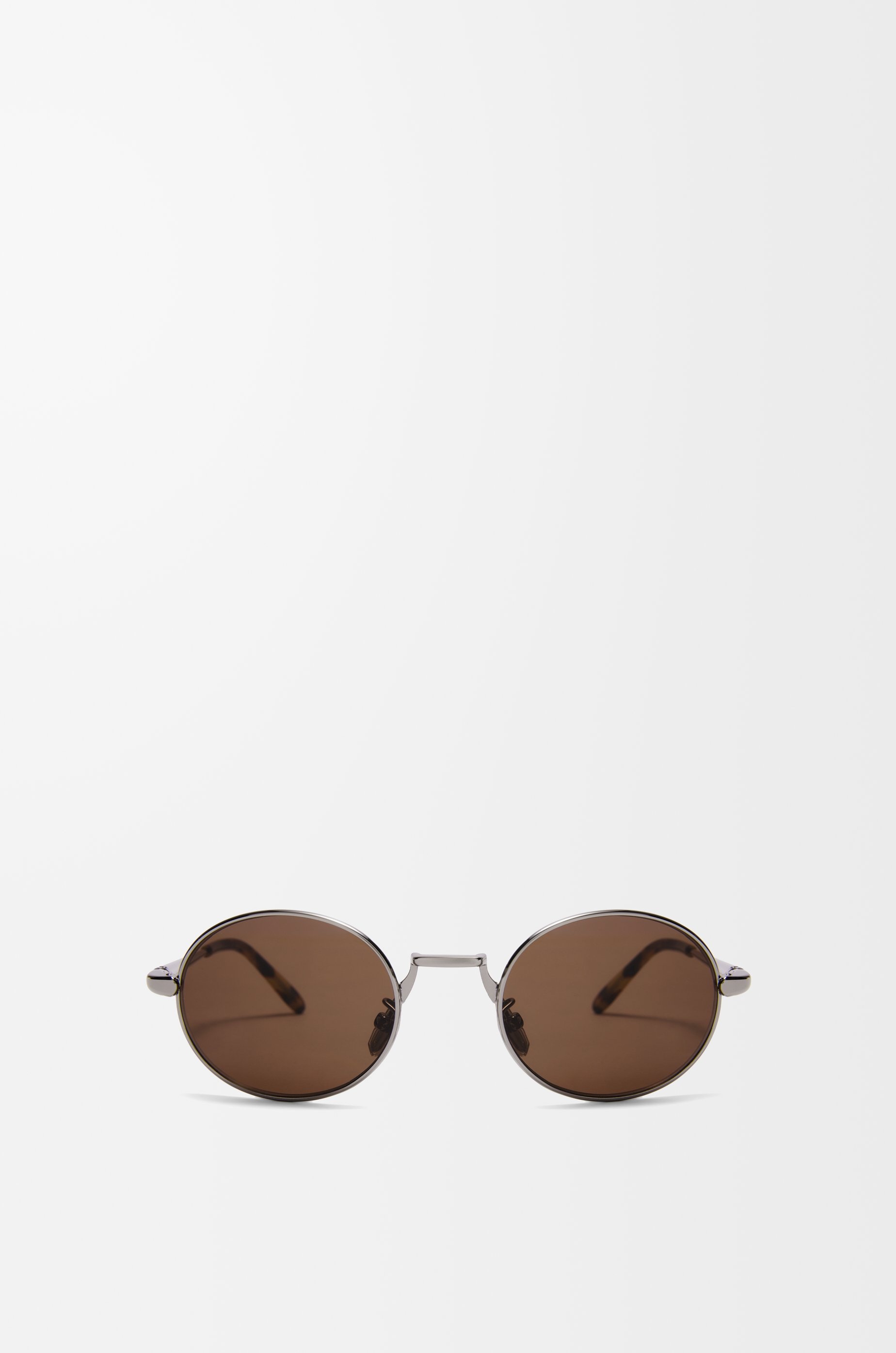 Oval sunglasses in metal with an engraved LOEWE on the temple and acetate tortoiseshell tips. - Universal fit - 100% UVA/UVB protection Details - Colour : Brown Sugar - Main material : Metal - Weight : 0.03 kg - Lens size (cm) : 4.8 - Lens size (inches) : 1.9 - Bridge size (cm) : 2.1 - Bridge size (inches) : 0.8 - Temple size (cm) : 14 - Temple size (inches) : 5.5 - Model ID : G737270X08 - CIL : - 0011127891 - Made in : Italy