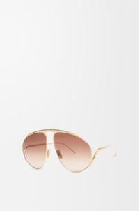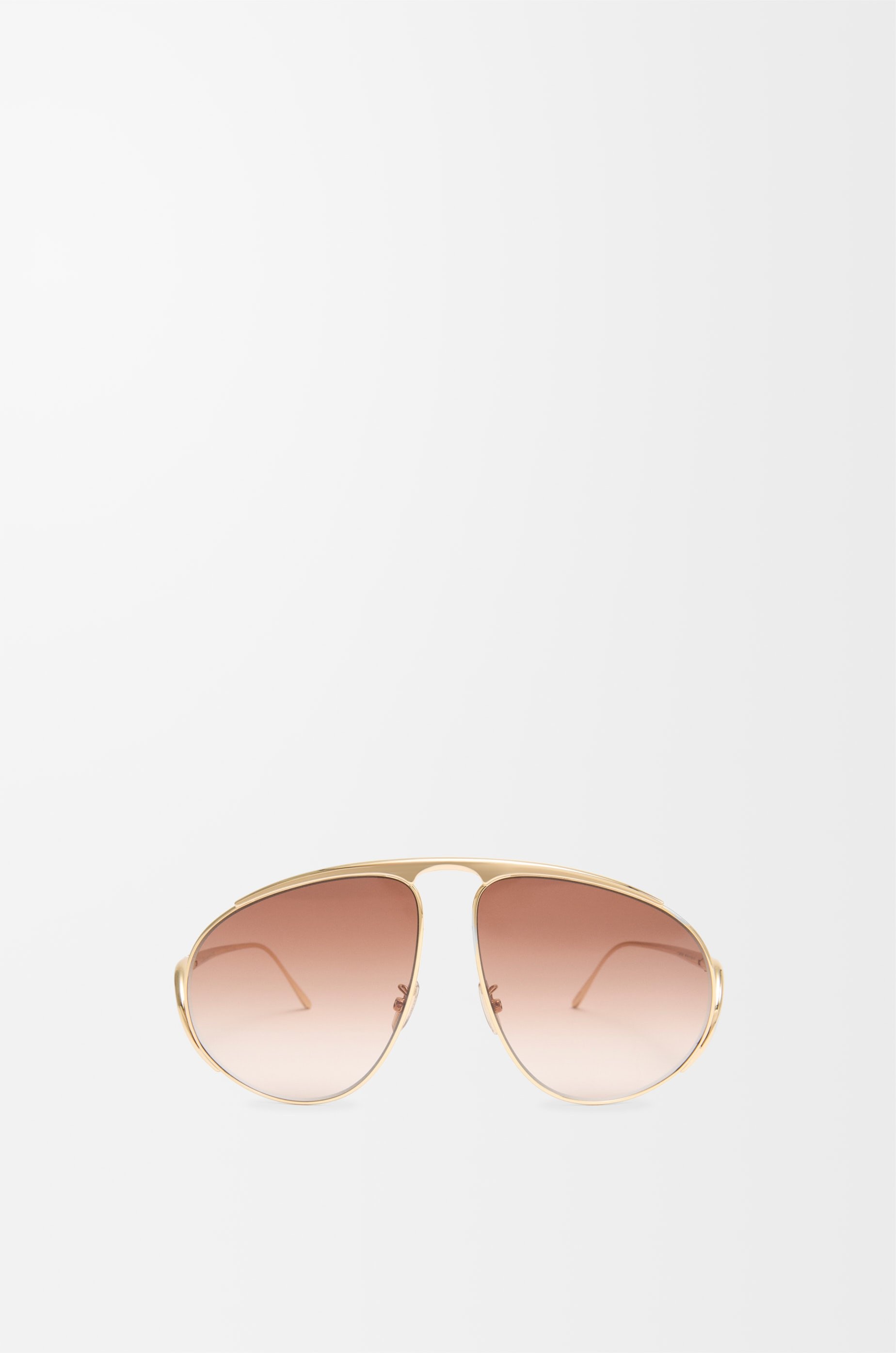 Aviator-shaped sunglasses in a light metal construction. - Universal fit - UVA/UVB protection - Engraved LOEWE Details - Colour : Gradient Brown - Main material : Metal - Weight : 0.1 kg - Lens size (cm) : 6.1 - Lens size (inches) : 2.4 - Bridge size (cm) : 1.3 - Bridge size (inches) : 0.5 - Temple size (cm) : 12 - Temple size (inches) : 4.7 - Model ID : G737LIGX01 - CIL : - 0011285533 - Made in : Italy