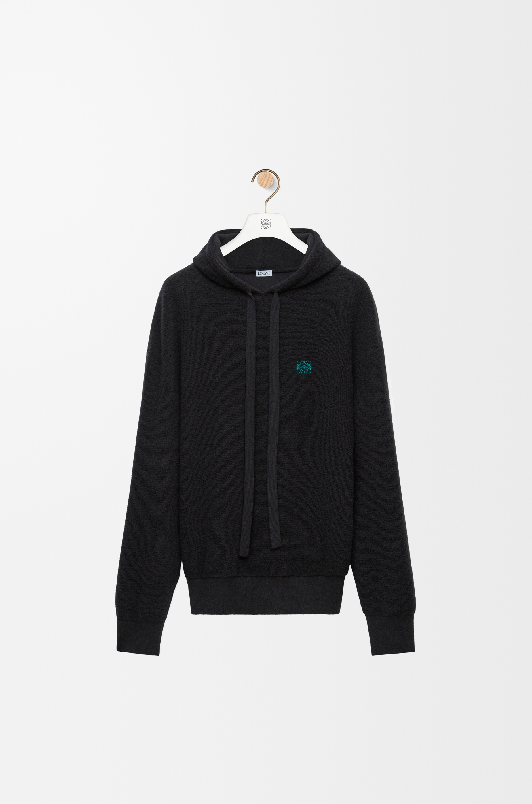 Hoodie in medium-weight wool. - Relaxed fit, regular length - Terry stitch - Hooded collar with drawstring - Ribbed cuffs and hem - Anagram embroidery placed at the chest Details - Colour : Black - Main material : Wool - Weight : 0.7 kg - Model ID : H526Y14KKA - Made in : Italy