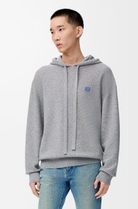 Hoodie in medium-weight wool. - Relaxed fit, regular length - Terry stitch - Hooded collar - Ribbed cuffs and hem - Anagram embroidery placed at the chest Colour: Light Grey Melange Main material: Wool Weight: 0.7 kg Made in: Italy Materials & care Main Material: 100% wool Other Material: 100% polyester