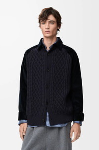 Overshirt in medium-weight cotton corduroy and medium-weight wool featuring a hybrid design with a cable knit front. - Regular fit, regular length - Classic collar - Raglan sleeves - Button front fastening, buttoned cuffs - Anagram embroidery placed at the back Colour: Dark Navy Blue/Navy Main material: Cotton Weight: 0.66 kg Made in: Italy Materials & care Main Material: 100% cotton