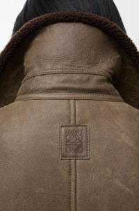 Jacket in medium-weight curly Merino shearling featuring a boxy silhouette and a double-breasted construction. - Regular fit, short length - Shearling collar and cuffs - Snap button front fastening - Vertical welt pockets - LOEWE Anagram embossed leather patch placed at the back Colour: Sage Main material: Shearling Weight: 1.23 kg Made in: Italy Materials & care Main Material: 100% lambskin