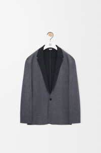 Jacket in medium-weight wool featuring a single-breasted construction and a contrast notch lapel. - Regular fit, regular length - Double face jersey stitch - Button front fastening - Anagram embossed leather tab placed at the side Colour: Grey Melange Main material: Wool Weight: 0.7 kg Made in: Italy Materials & care Main Material: 99% wool 1% calf skin