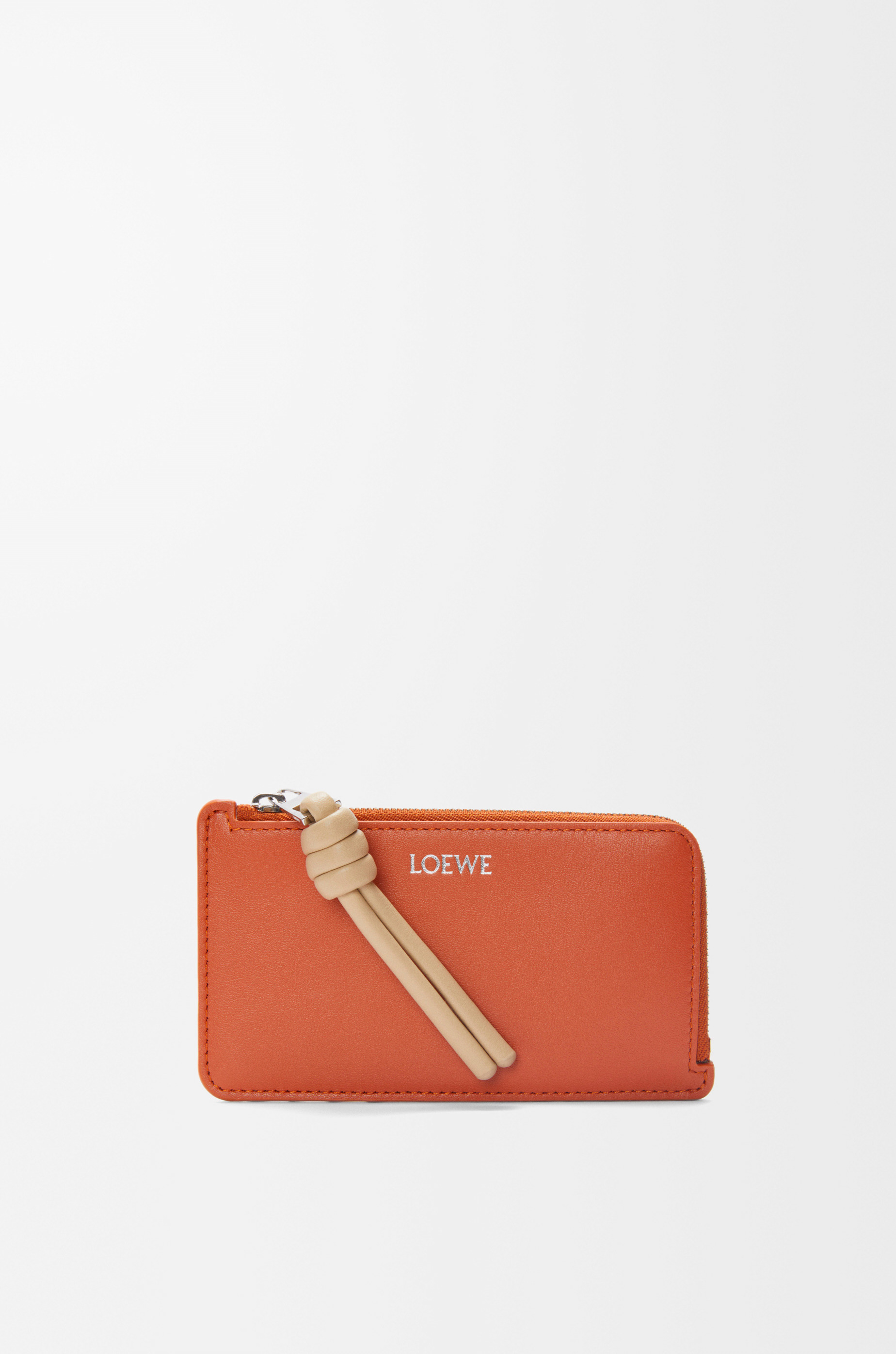 Coin cardholder in shiny nappa calfskin. - Four card slots, one zipped compartment - Zip closure with contrast knot pull - Contrast calfskin lining - Gold embossed LOEWE Details - Colour : Maple/Papercraft - Metallic colour : Palladium - Main material : Shiny Nappa Calf - Weight : 0.03 kg - Height (cm) : 7.5 - Width (cm) : 13 - Depth (cm) : 1 - Height (inch) : 3 - Width (inch) : 5.1 - Depth (inch) : 0.4 - Model ID : CEM1Z40X02 - CIL : - 0011092814 - Made in : Spain