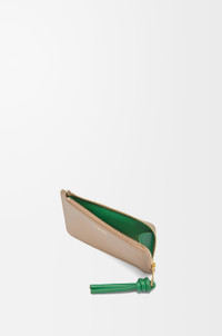 Coin cardholder in shiny nappa calfskin. - Four card slots, one zipped compartment - Zip closure with contrast knot pull - Contrast calfskin lining - Gold embossed LOEWE Details - Colour : Sand/Tropical Green - Metallic colour : Gold - Main material : Shiny Nappa Calf - Weight : 0.03 kg - Height (cm) : 7.5 - Width (cm) : 13 - Depth (cm) : 1 - Height (inch) : 3 - Width (inch) : 5.1 - Depth (inch) : 0.4 - Model ID : CEM1Z40X02 - CIL : - 0011189685 - Made in : Spain