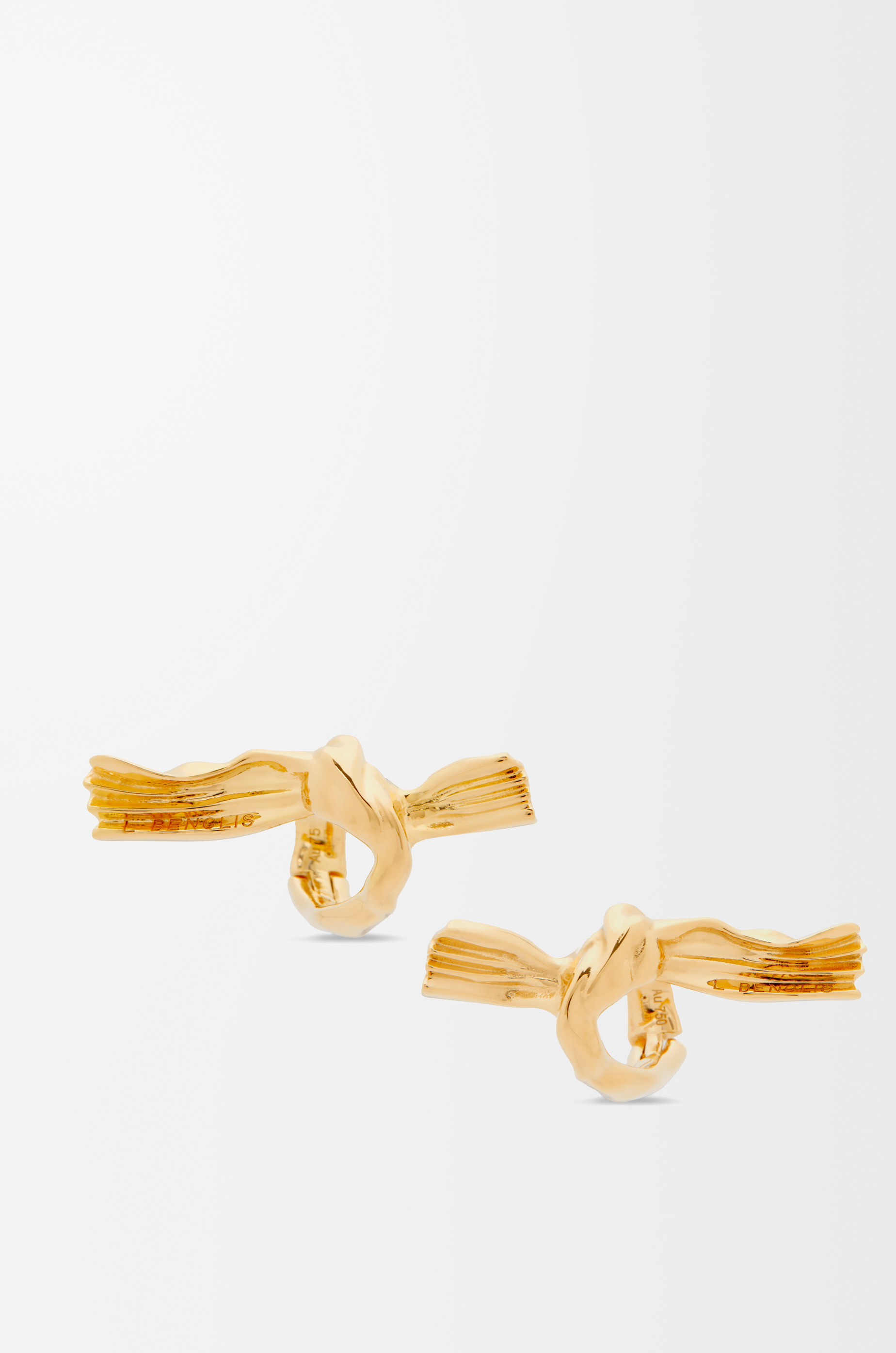 Knuckle Not earrings crafted in gold inspired by an original sculpture by artist Lynda Benglis as part of a special LOEWE x Lynda Benglis collaboration. - Small huggie hoops - Engraved L BENGLIS signature - Engraved LOEWE Details - Colour : Gold - Metallic colour : Gold - Main material : Gold - Weight : 0.0072 kg - Model ID : JJL1239X03 - CIL : - 0011080504 - Made in : Italy