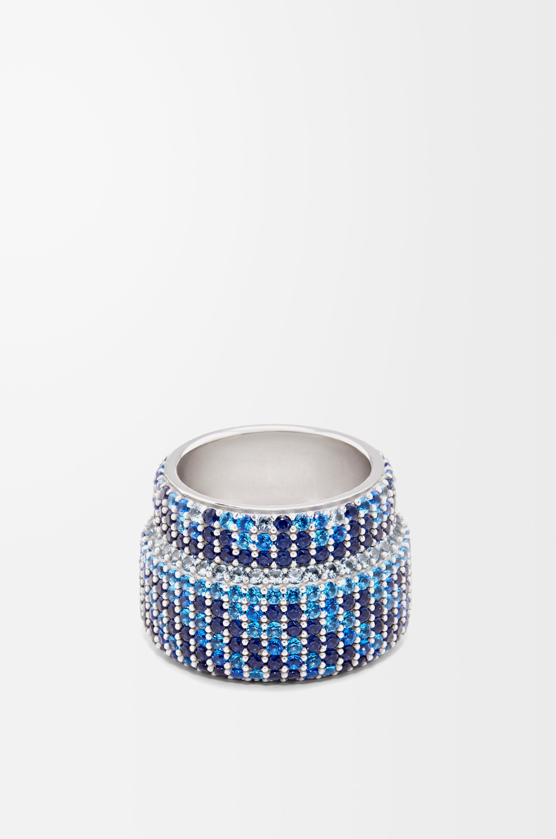Large ring crafted in sterling silver with monochrome crystals in different shades. - Engraved LOEWE Details - Colour : Silver/Blue - Metallic colour : Silver - Main material : Sterling Silver/Crystals - Weight : 0.02382 kg - Model ID : J000305X20 - Made in : Italy