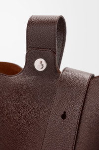 The Pebble bucket is defined by minimalistic lines and a functional Anagram Pebble that allows to adjust strap length. This large version is crafted in supple grained calfskin. - Shoulder or crossbody carry - Adjustable strap - One internal pocket - Suede lining - Anagram Pebble Details - Colour : Oxblood - Metallic colour : Palladium - Main material : Supple Grained Calf - Strap length : 45 - 93 cm - Strap Drop : 20 - 44 cm - Weight : 0.82 kg - Height (cm) : 33 - Width (cm) : 28 - Depth (cm) : 28 - Height (inch) : 13 - Width (inch) : 11 - Depth (inch) : 11 - Model ID : BANBBBHX06 - CIL : - 0011247830 - Made in : Spain