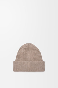 Beanie crafted in medium-weight ribbed wool knit. - Regular length - Turn-up cuff - Blurred LOEWE embroidery placed at the front Colour: Dark Beige Main material: Wool Weight: 0.2 kg Height: 26 cm Width: 21.5 cm Made in: Italy