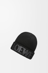 Beanie crafted in medium-weight wool knitted rib. - Turn-up cuff - Blurred LOEWE embroidery Details - Colour : Black - Main material : Wool - Weight : 0.12 kg - Height (cm) : 26 - Width (cm) : 21.5 - Height (inch) : 10.2 - Width (inch) : 8.5 - Model ID : F540257X23 - CIL : - 0011081635 - Made in : Italy