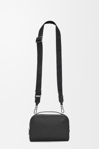 Versatile wearable Mini Camera Crossbody bag with two zip compartments. This version is crafted in soft grained calfskin. - Crossbody or top handle carry - Adjustable and detachable LOEWE webbing strap - Herringbone cotton canvas lining - Embossed Anagram Details - Colour: Black - Metallic colour: Palladium - Main material: Soft Grained Calf - Strap length: 75 - 128 cm - Weight: 0.32 kg - Height (cm): 13 - Width (cm): 18 - Depth (cm): 8.5 - Height (inch): 5.1 - Width (inch): 7.1 - Depth (inch): 3.3 - Model ID: C660R41X01 - CIL: 0010973196 - Made in: Spain
