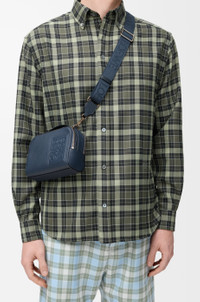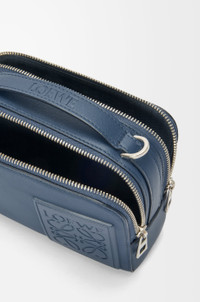 Versatile camera bag with two zipped compartments. This version is crafted in satin calfskin. - Crossbody or hand carry - Adjustable and detachable LOEWE webbing strap - Herringbone cotton canvas lining - Debossed LOEWE Anagram patch Colour: Indigo Dye Metallic colour: Palladium Main material: Satin Calf Strap length: 75 - 128 cm Strap drop: 37 - 63 cm Weight: 0.33 kg Height: 13 cm Width: 18 cm Depth: 8.5 cm Made in: Portugal
