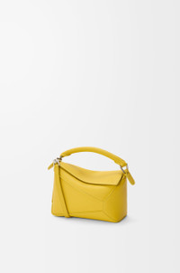 The Puzzle Edge is defined by its distinctive geometric lines and its cuboid form. It differs to the classic construction in its overlapped panels with single stitch lines. This mini version is crafted in soft grained calfskin. - Shoulder, crossbody or hand carry - Detachable and adjustable strap - Zip closure with calfskin pull - Herringbone cotton canvas lining - Embossed Anagram Colour: Dandelion Metallic colour: Palladium Main material: Soft Grained Calf Strap length: 108.5 - 137 cm Strap drop: 54.5 - 68.5 cm Handle drop: 4 cm Weight: 0.27 kg Height: 12.5 cm Width: 18 cm Depth: 8 cm Made in: Spain