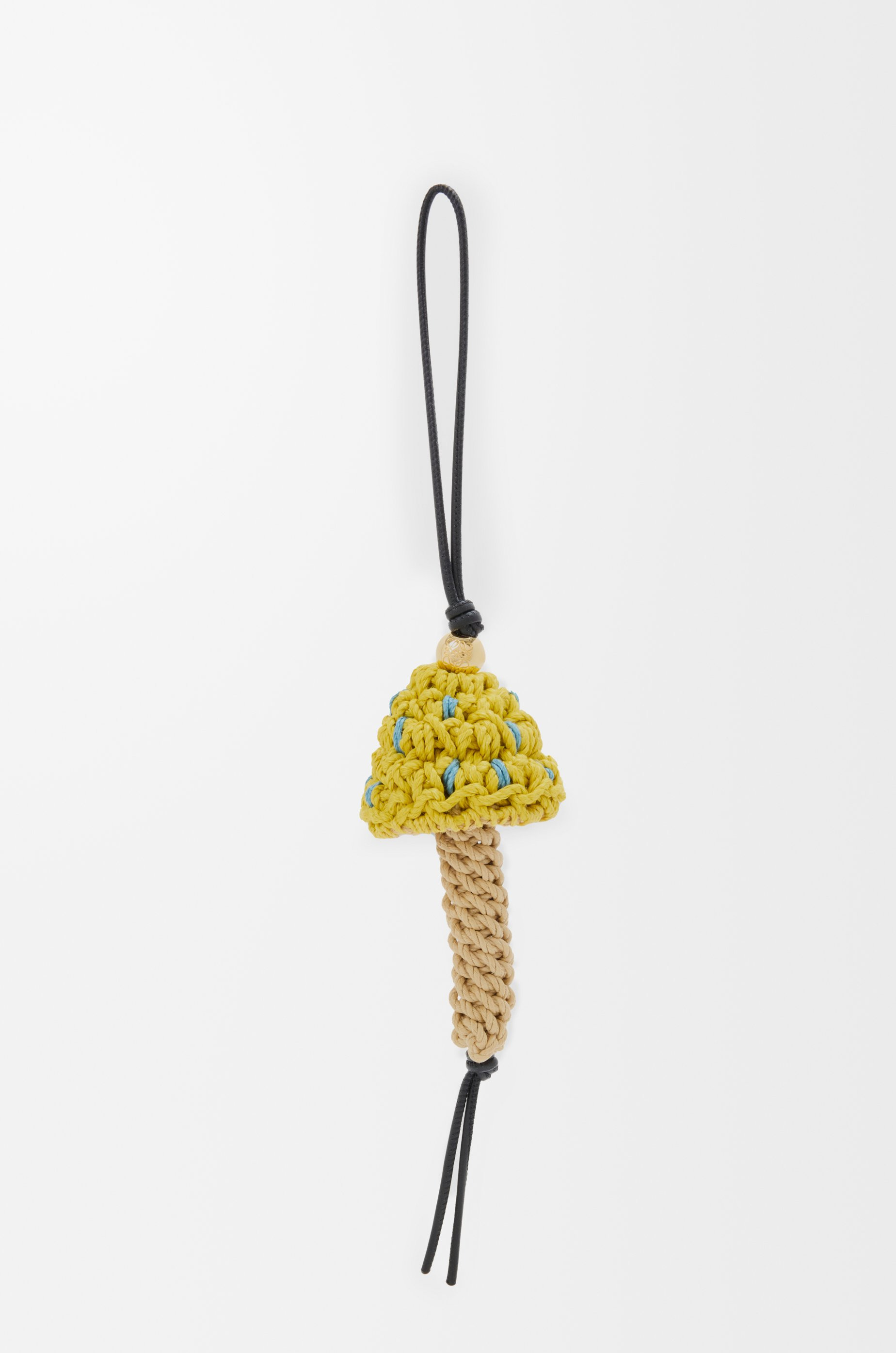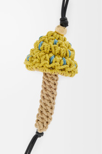 Mushroom charm in woven cord on a looped calfskin strap with an Anagram Pebble dice. Colour: Yellow/Natural Metallic colour: Gold Main material: Cord Weight: 0.039 kg Width: 31.5 cm Depth: 6.5 cm Made in: Spain