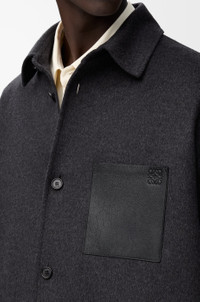 Overshirt in lightweight double face wool and cashmere. - Regular fit, regular length - Classic collar - Button front fastening, buttoned cuffs - Leather chest patch pocket - Embossed Anagram on the chest pocket Colour: Charcoal Melange Main material: Wool/cashmere Weight: 0.7 kg Made in: Italy Materials & care Main Material: 90% wool 10% cashmere