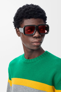 Diving mask sunglasses in acetate with thick rims and arms and a LOEWE logo. - 100% UVA/UVB protection Details - Colour: Shiny Black - Main material: Acetate - UV filter: 1 - Weight: 0.053 kg - Height (cm): 0.508 - Width (cm): 0.15 - Height (inch): 0.2 - Width (inch): 0.1 - Lens size (cm): 5.6 - Lens size (inches): 2.2 - Bridge size (cm): 1.7 - Bridge size (inches): 0.7 - Temple size (cm): 14.5 - Temple size (inches): 5.7 - Model ID: G616446X01 - CIL: 0010556256 - Made in: Italy