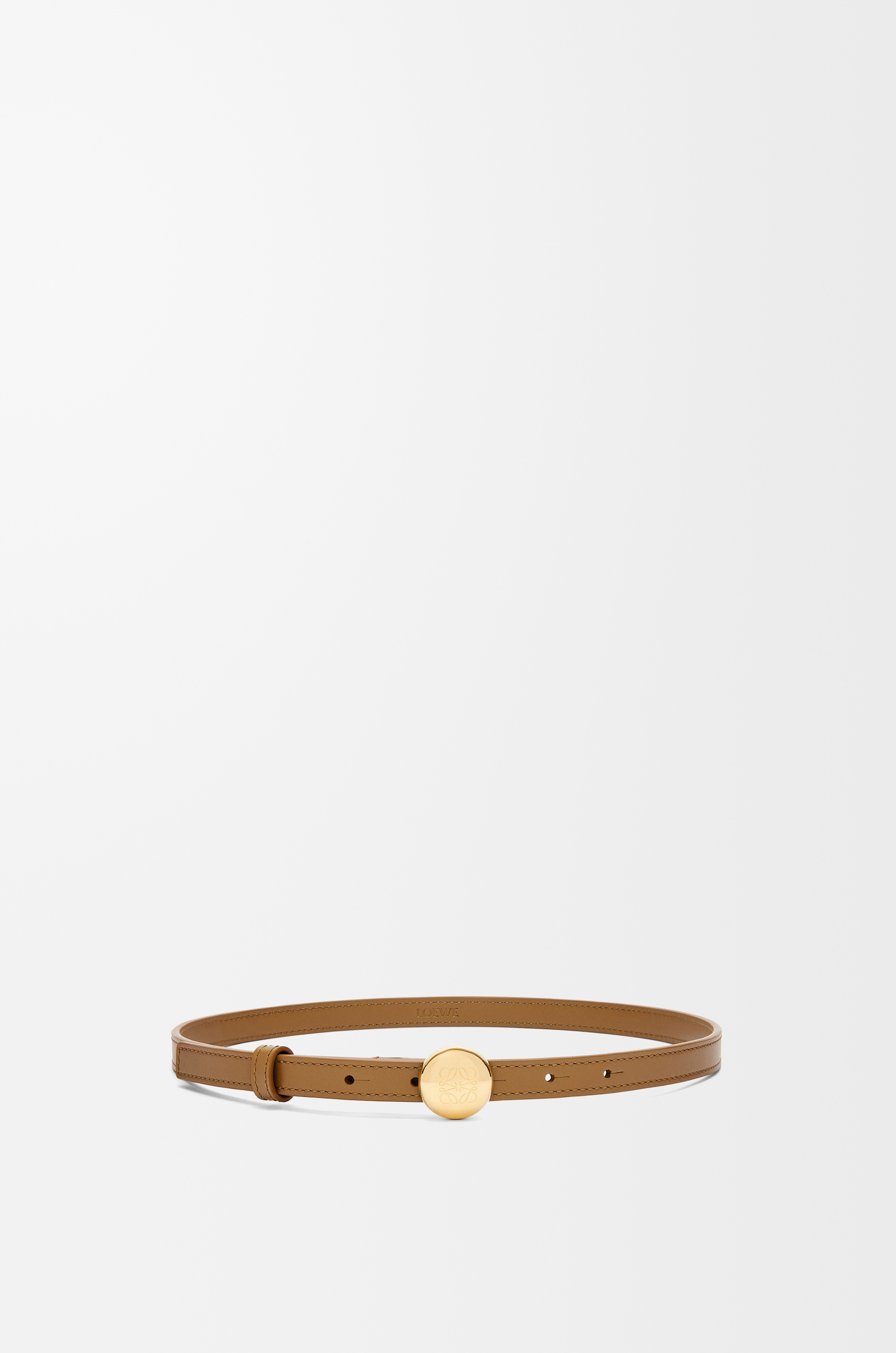 Belt in smooth calfskin with an Anagram Pebble buckle. - 1.5cm wide - Five holes regulation Details - Colour: Oak/Gold - Metallic colour: Gold - Main material: Smooth Calf - Weight: 0.09 kg - Depth (cm): 1.5 - Depth (inch): 0.6 - Model ID: E619Z16X17 - Made in: Spain