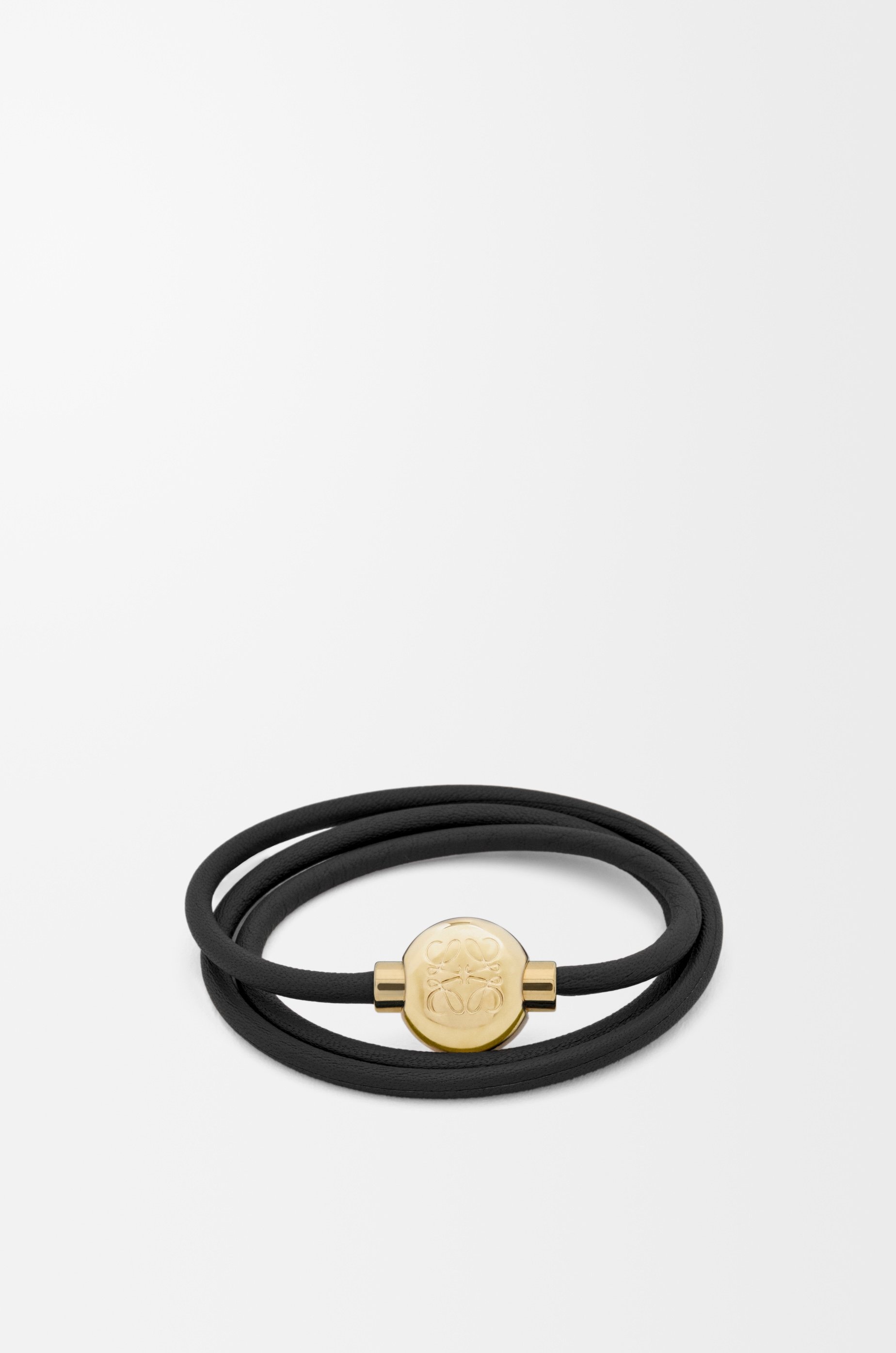 Tubular leather strap adorned with an Anagram Pebble. - Magnetic closure - Engraved Anagram Colour: Black/Gold Metallic colour: Gold Main material: Calf Weight: 0.01 kg Depth: 1.5 cm Made in: Spain