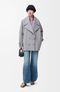 Peacoat in medium-weight double-face wool featuring a double-breasted construction and a cocoon silhouette. - Relaxed fit, short length - Button front fastening with Anagram Pebble buttons - Cuff tabs - Seam pockets - Exaggerated lapels Colour: Grey Main material: Wool Weight: 1.5 kg Made in: Italy Materials & care Main Material: 100% wool Other Material: 100% cotton