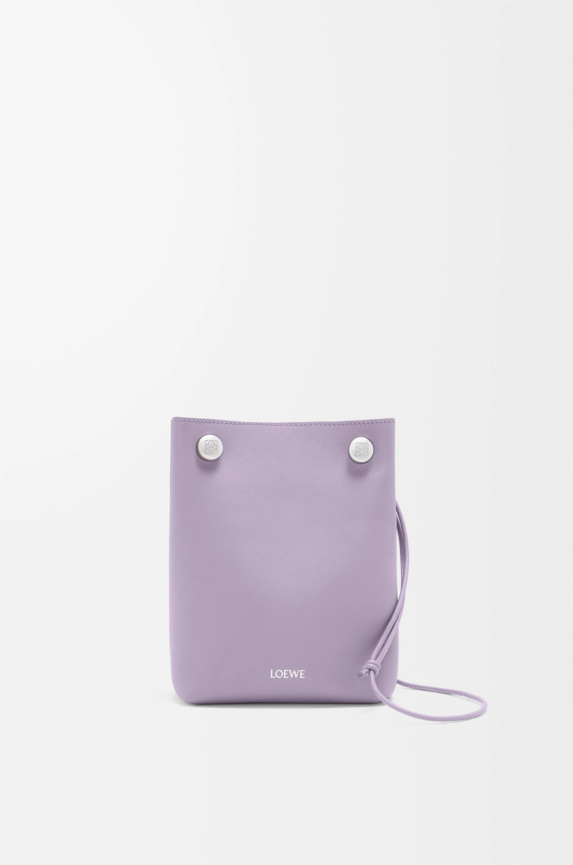 Pouch in smooth calfskin featuring a folded construction, a tubular strap and a double signature Anagram Pebble. - Adjustable strap - One internal pocket - Leather lining - Gold embossed LOEWE, engraved Anagram Colour: Dirty Mauve Metallic colour: Palladium Main material: Smooth calf Strap length: 63 - 123 cm Strap drop: 30 - 60 cm Weight: 0.2 kg Height: 21.5 cm Width: 17 cm Depth: 7 cm Made in: Spain