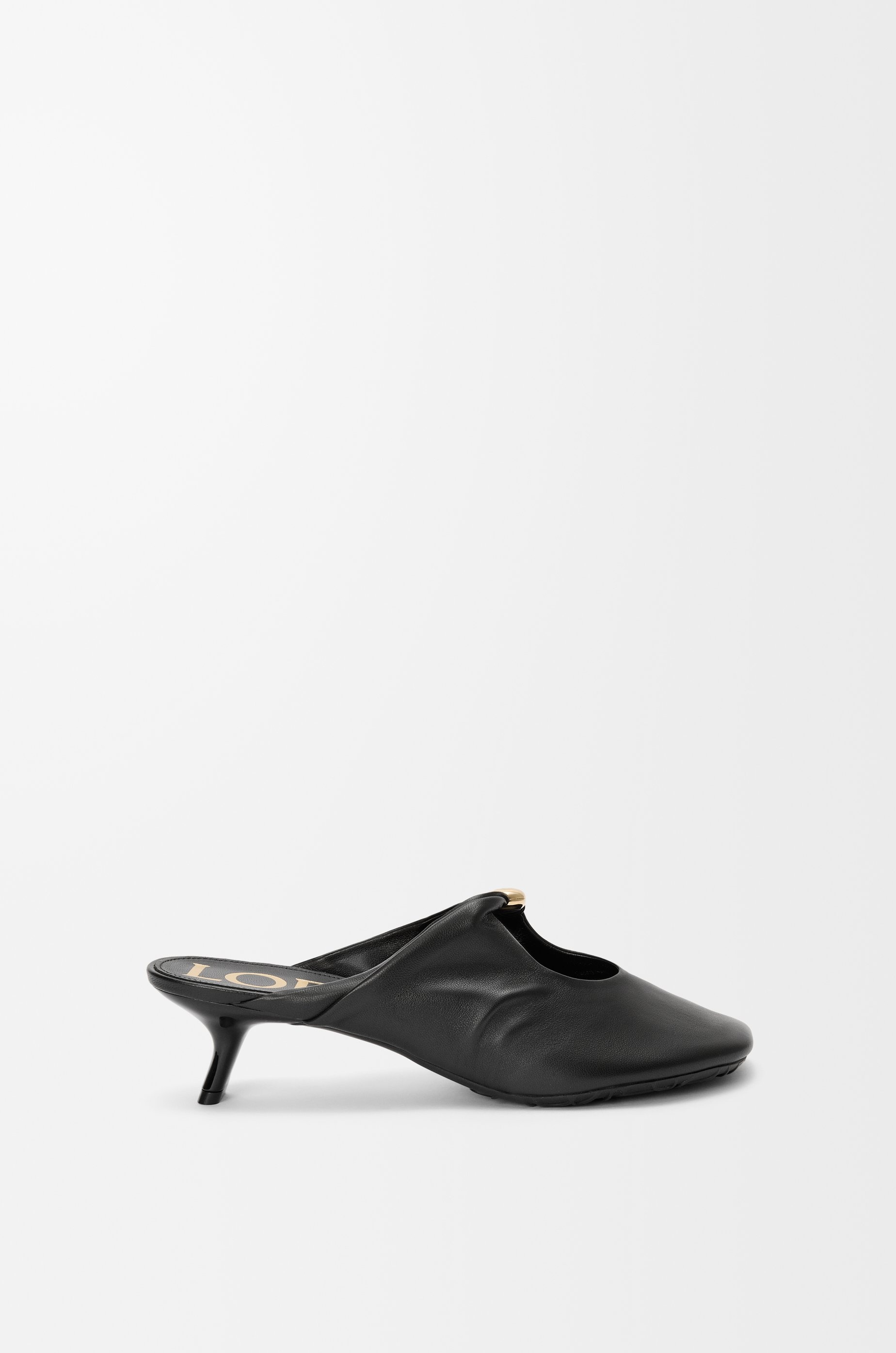 Mule in supple nappa lambskin with a flexible upper engineered for extra comfort, featuring a metallic pebble with an Anagram engraved detail and a signature petal toe shape. - 45mm heel - Engraved Anagram on Pebble - Padded leather insole - Anagram embossed rubber outsole Colour: Black Main material: Nappa Lambskin Weight: 0.4 kg Made in: Italy