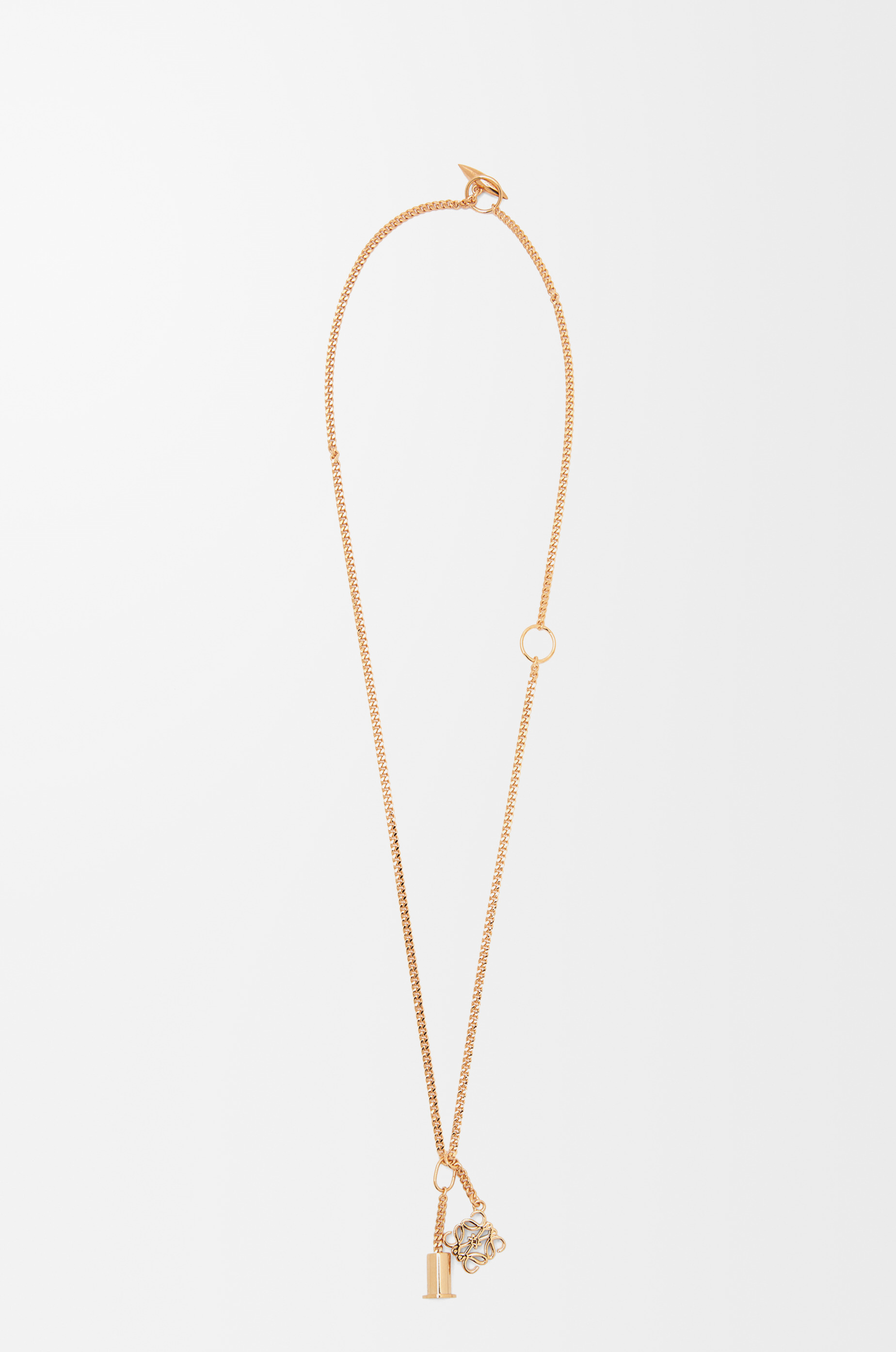 Personalisation necklace with an Anagram charm and fastened with a bar and ring closure engraved with LOEWE. Crafted in metal with a palladium finish. Details - Colour: Gold - Metallic colour: Gold - Main material: Brass - Weight: 0.02 kg - Width (cm): 34.5 - Depth (cm): 0.3 - Width (inch): 13.6 - Depth (inch): 0.1 - Model ID: N691420X02 - CIL: 0010652071 - Made in: Spain