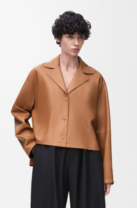 Blouse in lightweight satin nappa lambskin with an ultra-soft glove touch. - Relaxed fit, regular length - Notch lapels - Snap button front fastening - Straight asymmetric front to back hem - Embossed Anagram placed at the front Details - Colour : Toffee - Main material : Nappa - Weight : 0.9 kg - Model ID : S359Y32L08 - Made in : Spain