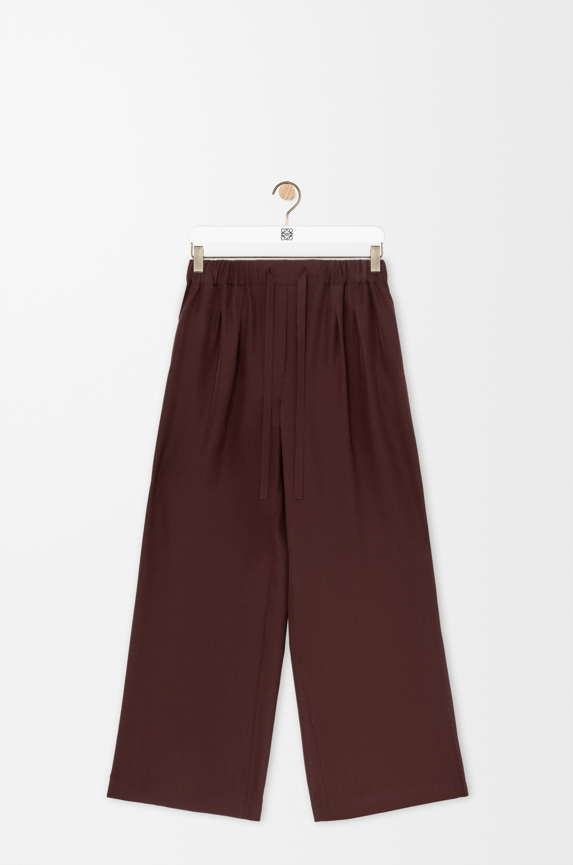 Trousers in lightweight matte silk crepe. - Relaxed fit, regular length - Mid waist, straight leg - Elasticated waist with drawstring - Slash pockets, buttoned rear flap pocket - Anagram embroidery placed at the front Colour: Burgundy Main material: Silk Weight: 0.25 kg Made in: Italy Materials & care Main Material: 100% silk