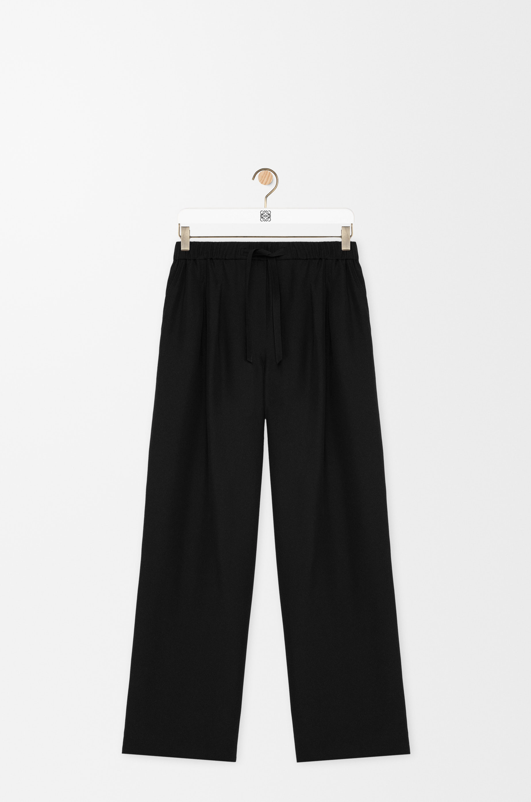 Trousers in lightweight matte silk crepe. - Relaxed fit, regular length - Mid waist, straight leg - Elasticated waist with drawstring - Slash pockets, buttoned rear flap pocket - Anagram embroidery placed at the front Colour: Black Main material: Silk Weight: 0.25 kg Made in: Italy Materials & care Main Material: 100% silk