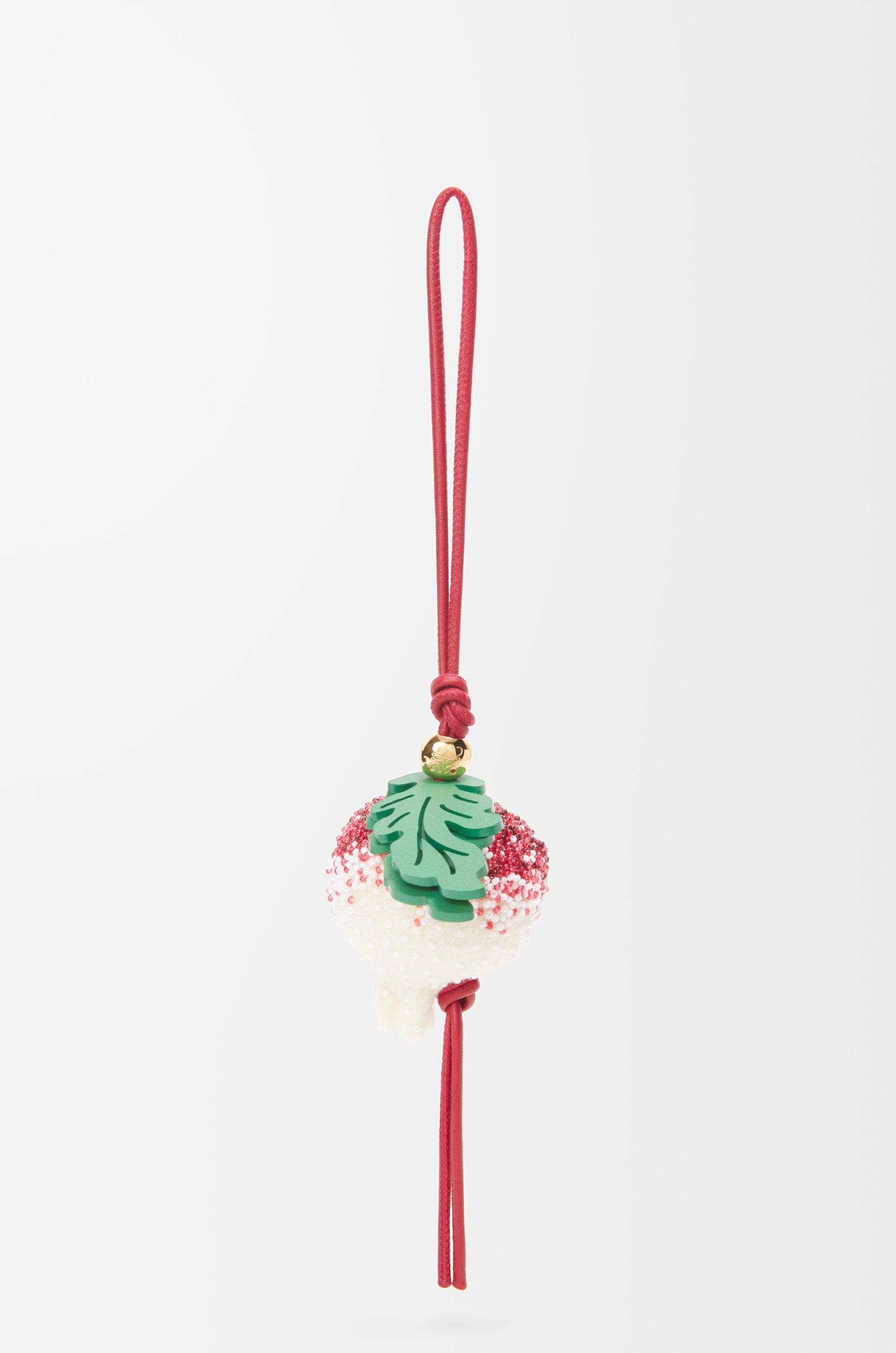 Radish charm in beaded felt embroidered by hand, an Anagram Pebble dice and a looped calfskin strap. Details - Colour : Crimson/Soft White - Metallic colour : Gold - Main material : Felt/Beads - Weight : 0.06 kg - Width (cm) : 30 - Depth (cm) : 6.5 - Width (inch) : 11.8 - Depth (inch) : 2.6 - Model ID : C621232XJH - CIL : - 0011182714 - Made in : Spain