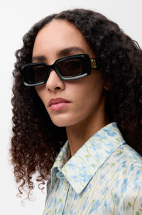Rectangular sunglasses in acetate with a Loewe Anagram in a gold finish on the arm. - International fit - UVA/UVB protection Details - Colour : Black - Main material : Acetate - UV filter : 3 - Weight : 0.054 kg - Height (cm) : 4.37 - Width (cm) : 14.03 - Height (inch) : 1.7 - Width (inch) : 5.5 - Lens size (cm) : 4.6 - Lens size (inches) : 1.8 - Bridge size (cm) : 2.2 - Bridge size (inches) : 0.9 - Temple size (cm) : 14 - Temple size (inches) : 5.5 - Model ID : G736270X18 - CIL : - 0010831147 - Made in : Italy