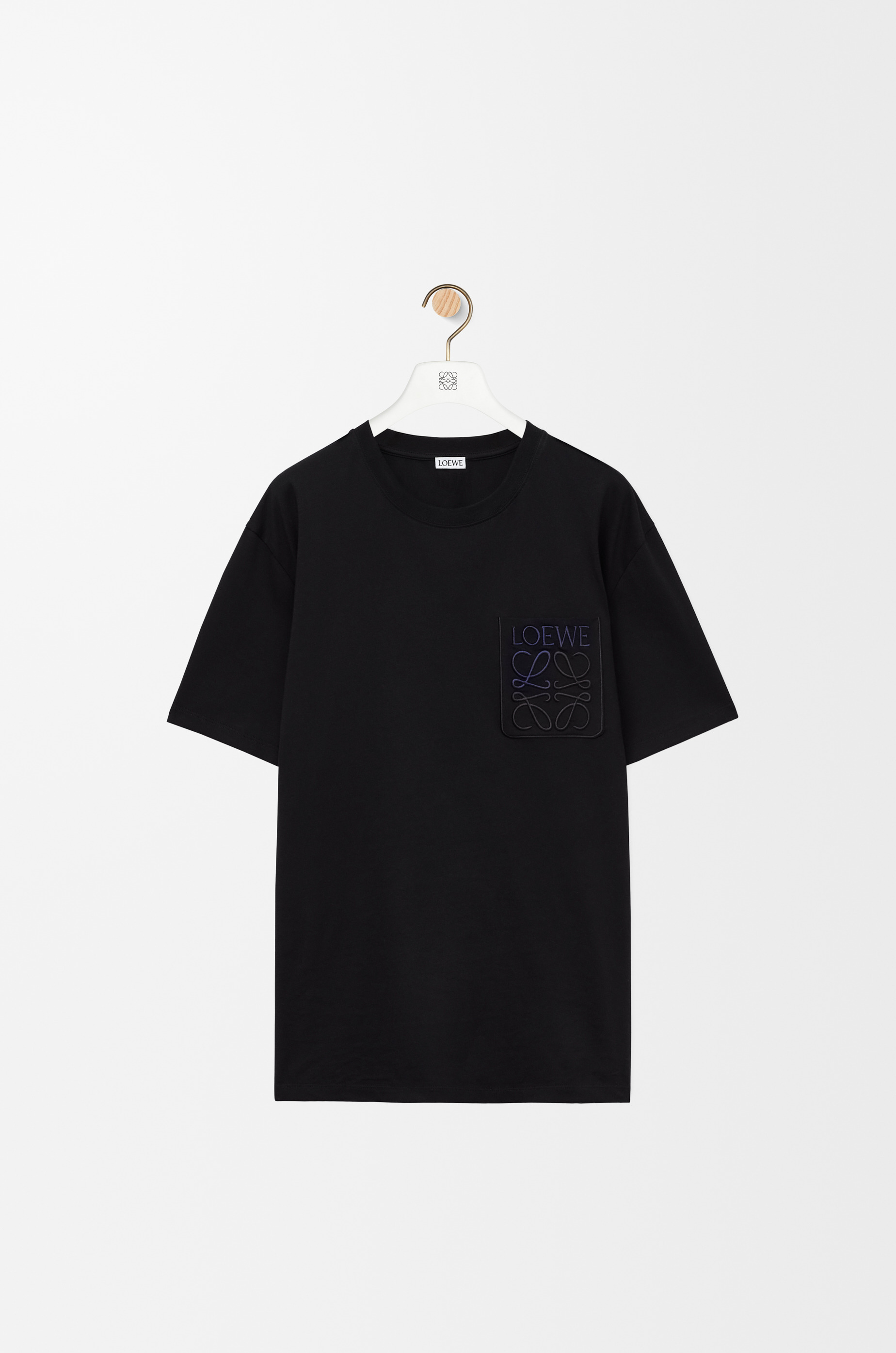 Relaxed fit T-shirt crafted in lightweight cotton jersey. - Relaxed fit - Regular length - Crew neck - Ribbed collar - Short sleeves - Two-tone LOEWE Anagram embroidered patch pocket on the chest Details - Colour: Black - Main material: Cotton - Weight: 0.2 kg - Model ID: H526Y22X99 - Made in: Portugal