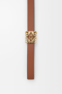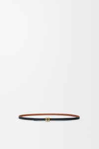 Reversible belt in smooth calfskin. - Anagram Cube buckle - Anchor buckle - 1cm wide - Five holes regulation Details - Colour : Tan/Black/Gold - Metallic colour : Gold - Main material : Smooth Calf - Weight : 0.03 kg - Depth (cm) : 1 - Depth (inch) : 0.4 - Model ID : E82111BX01 - Made in : Spain