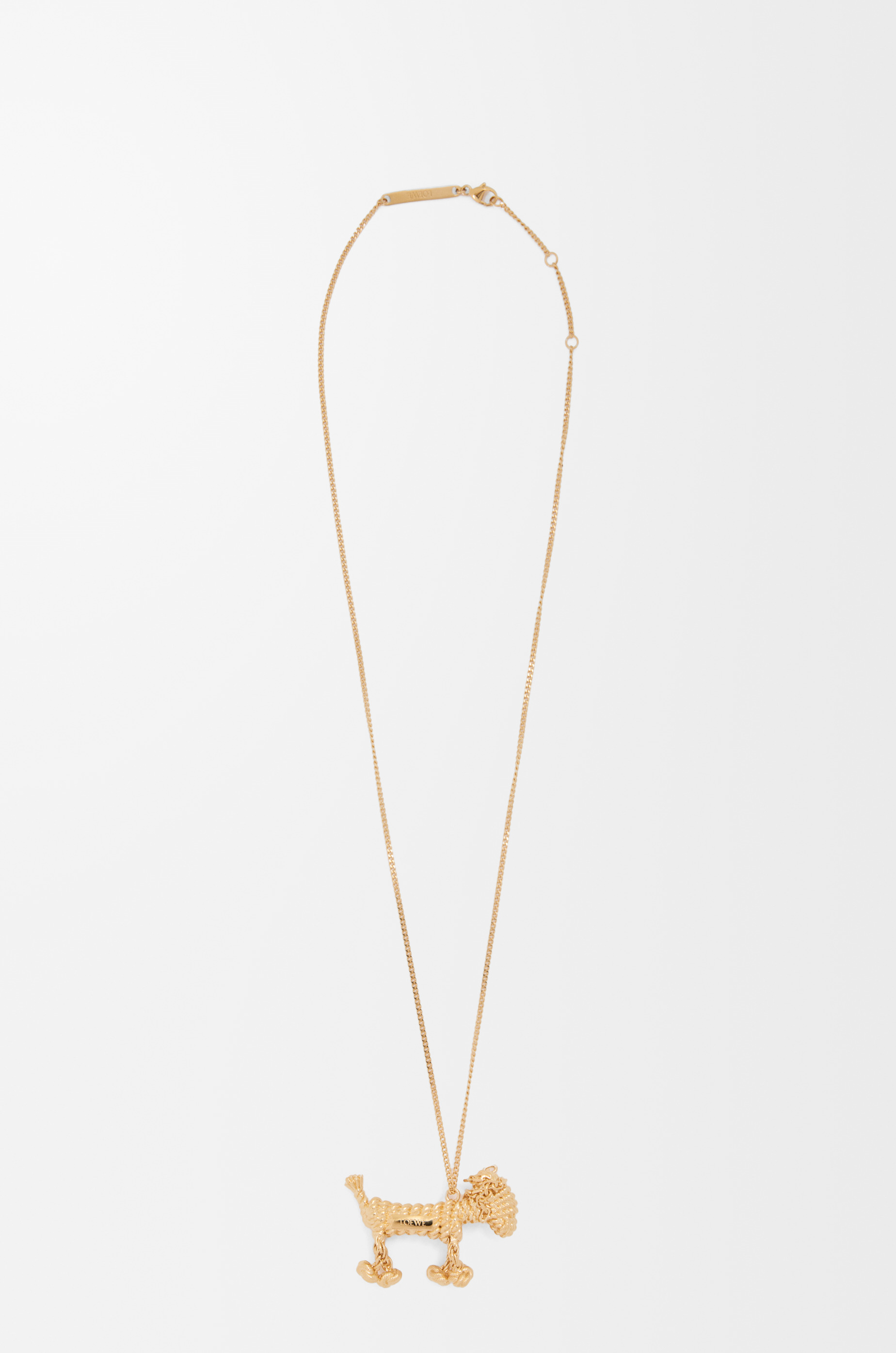 Sausage dog necklace in brass with a braided rope texture. - Adjustable length: 48cm-50cm-52cm - Hook fastening - Engraved LOEWE Colour: Gold Main material: Brass Weight: 0.023 kg Made in: Italy
