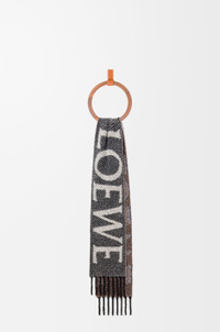 Scarf in medium-weight alpaca and wool blend featuring a multitone textured boucle LOEWE jacquard. - 23cm x 217cm - Chunky fringed edges Colour: Light Blue/White Main material: Alpaca/Wool Weight: 0.233 kg Height: 202 cm Width: 23 cm Made in: Italy