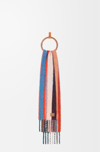 Scarf in medium-weight brushed alpaca and wool blend featuring multitone jacquard stripes. - 23cm x 185cm - Chunky fringed edges - LOEWE embossed leather patch placed on the corner Colour: Orange/Blue Main material: Alpaca/Wool Weight: 0.26 kg Height: 190 cm Width: 25 cm Made in: Italy