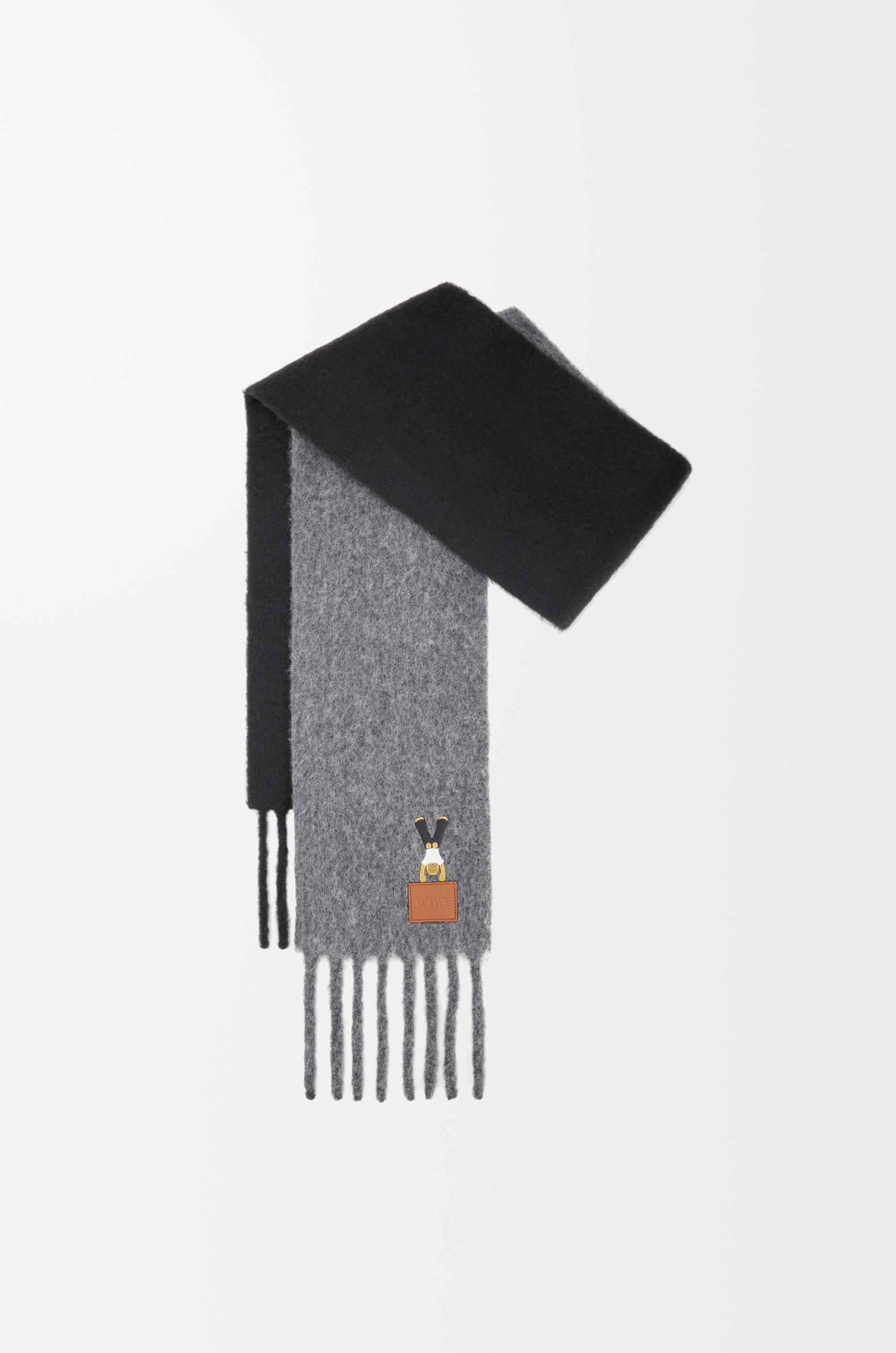 Scarf in medium-weight alpaca and wool blend featuring a crystal-embellished Acrobat embroidery. - 23cm x 176cm - Two-tone design - Fringed edges - LOEWE embossed leather patch placed at the corner Colour: Dark Grey/Black Main material: Alpaca/Wool Weight: 0.175 kg Made in: Italy