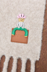Scarf in medium-weight alpaca and wool blend featuring a crystal-embellished Acrobat embroidery. - 23cm x 176cm - Two-tone design - Fringed edges - LOEWE embossed leather patch placed at the corner Colour: Light Grey/Brown Main material: Alpaca/Wool Weight: 0.175 kg Height: 180 cm Width: 22 cm Made in: Italy