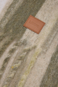 Scarf in medium-weight brushed alpaca and wool blend featuring multitone jacquard stripes. - 23cm x 185cm - Chunky fringed edges - LOEWE embossed leather patch placed on the corner Colour: Soft White/Khaki Multitone Main material: Alpaca/wool Weight: 0.26 kg Height: 190 cm Width: 25 cm Made in: Italy
