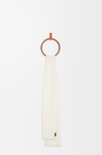 Scarf crafted in lightweight cashmere. - 70cm x 195cm - Frayed edges - LOEWE leather tab placed on the side edge Details - Colour : White - Main material : Cashmere/Calf - Weight : 0.072 kg - Height (cm) : 195 - Width (cm) : 70 - Height (inch) : 76.8 - Width (inch) : 27.6 - Model ID : F811251X04 - CIL : - 0011081379 - Made in : Italy