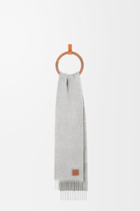 Scarf crafted in medium-weight mohair and wool blend. - 23cm x 185cm - Fringed edges - LOEWE Anagram embossed leather pach placed on the corner Details - Colour: Light Grey - Main material: Mohair/Wool#calfskin - Weight: 0.2 kg - Height (cm): 23 - Width (cm): 185 - Height (inch): 9.1 - Width (inch): 72.8 - Model ID: F655254X01 - CIL: 0010689487 - Made in: Spain