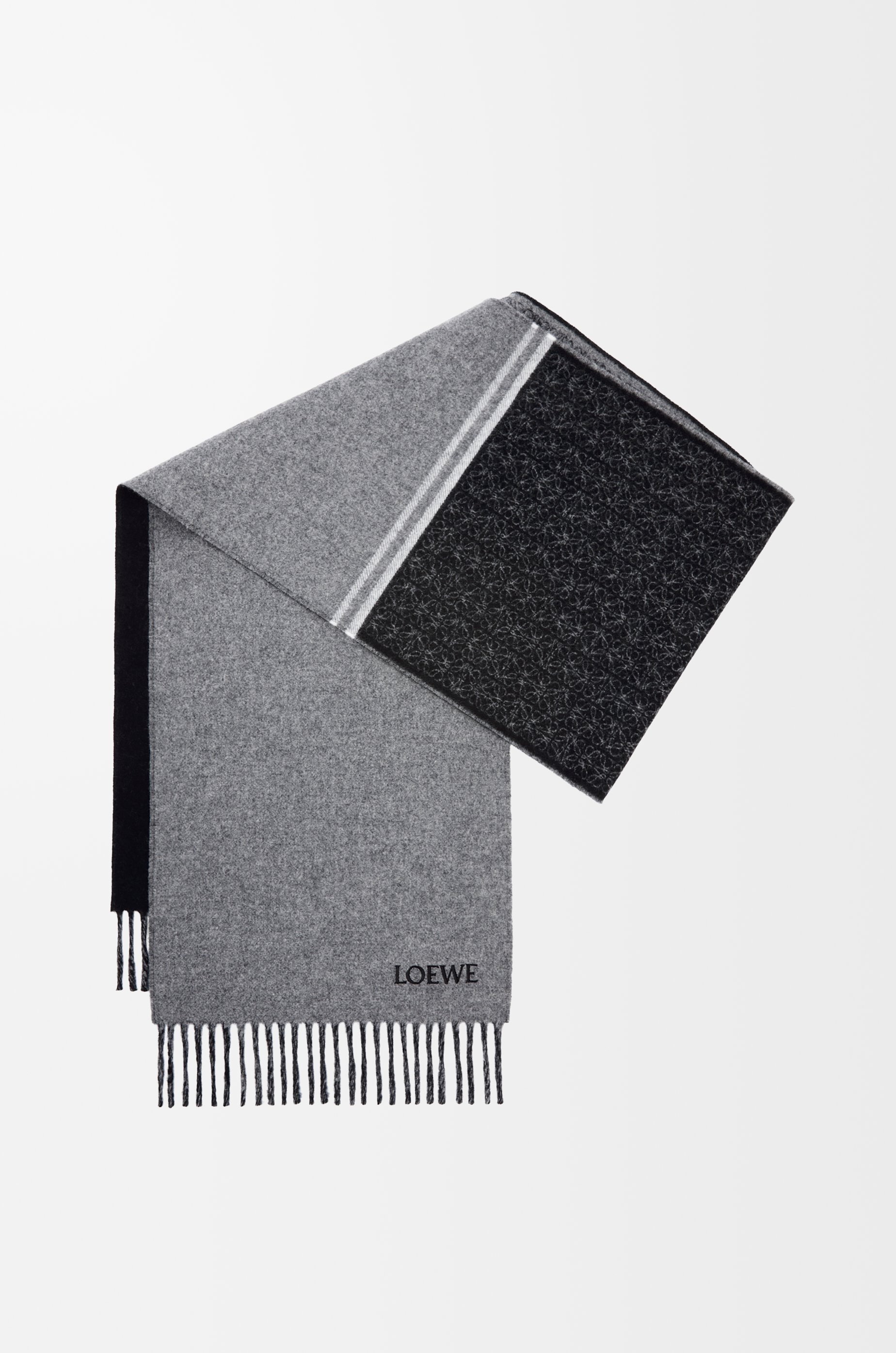 Scarf crafted in medium-weigth double face wool and cashmere blend. - 30cm x 180cm - Anagram all over jacquard - Fringed edges - LOEWE embroidery placed on the corner Details - Colour: Black/Grey - Main material: Wool/Cashmere - Weight: 0.25 kg - Height (cm): 180 - Width (cm): 30 - Height (inch): 70.9 - Width (inch): 11.8 - Model ID: F606257XAI - CIL: 0010793594 - Made in: United Kingdom