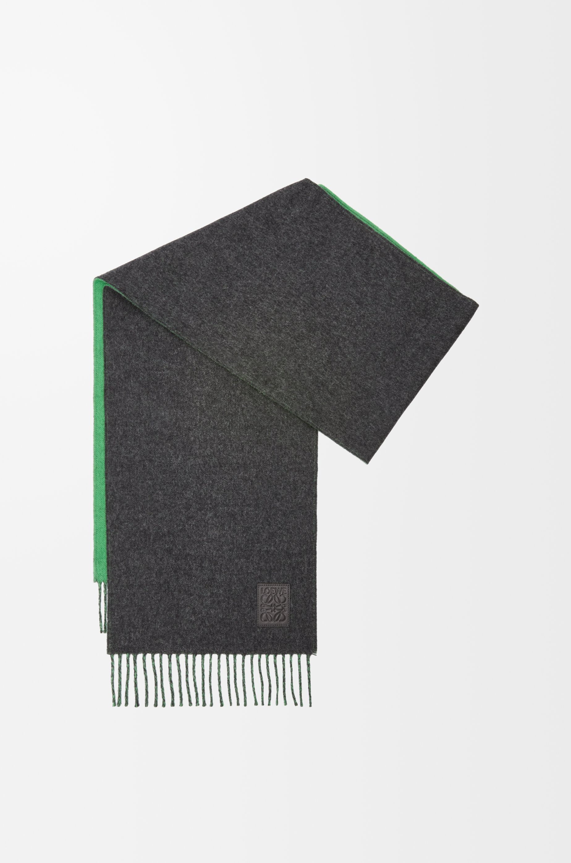 Scarf crafted in double face wool and cashmere blend. - 28cm x 180cm - Two-tone design - Fringed edges - LOEWE Anagram leather patch placed on the corner Details - Colour : Dark Green/Green - Main material : Wool/Cashmere - Weight : 0.163 kg - Height (cm) : 180 - Width (cm) : 28 - Height (inch) : 70.9 - Width (inch) : 11 - Model ID : F811251X06 - CIL : - 0011198389 - Made in : United Kingdom