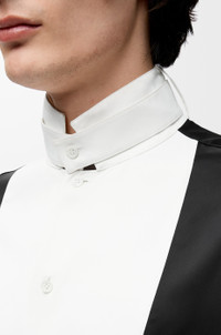 Shirt in lightweight fluid viscose satin featuring a contrast bib and a detachable collar band. - Regular fit, regular length - Button front fastening, buttoned cuffs - Anagram embroidery placed at the back Colour: Black/White Main material: Viscose Weight: 0.35 kg Made in: Italy Materials & care Main Material: 100% viscose
